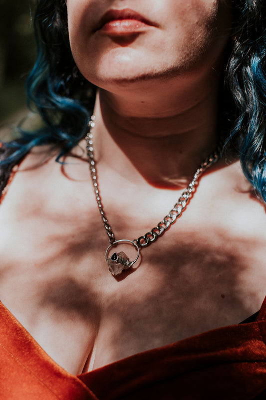 Minerva Necklace – Herkimer Diamond & Black Obsidian