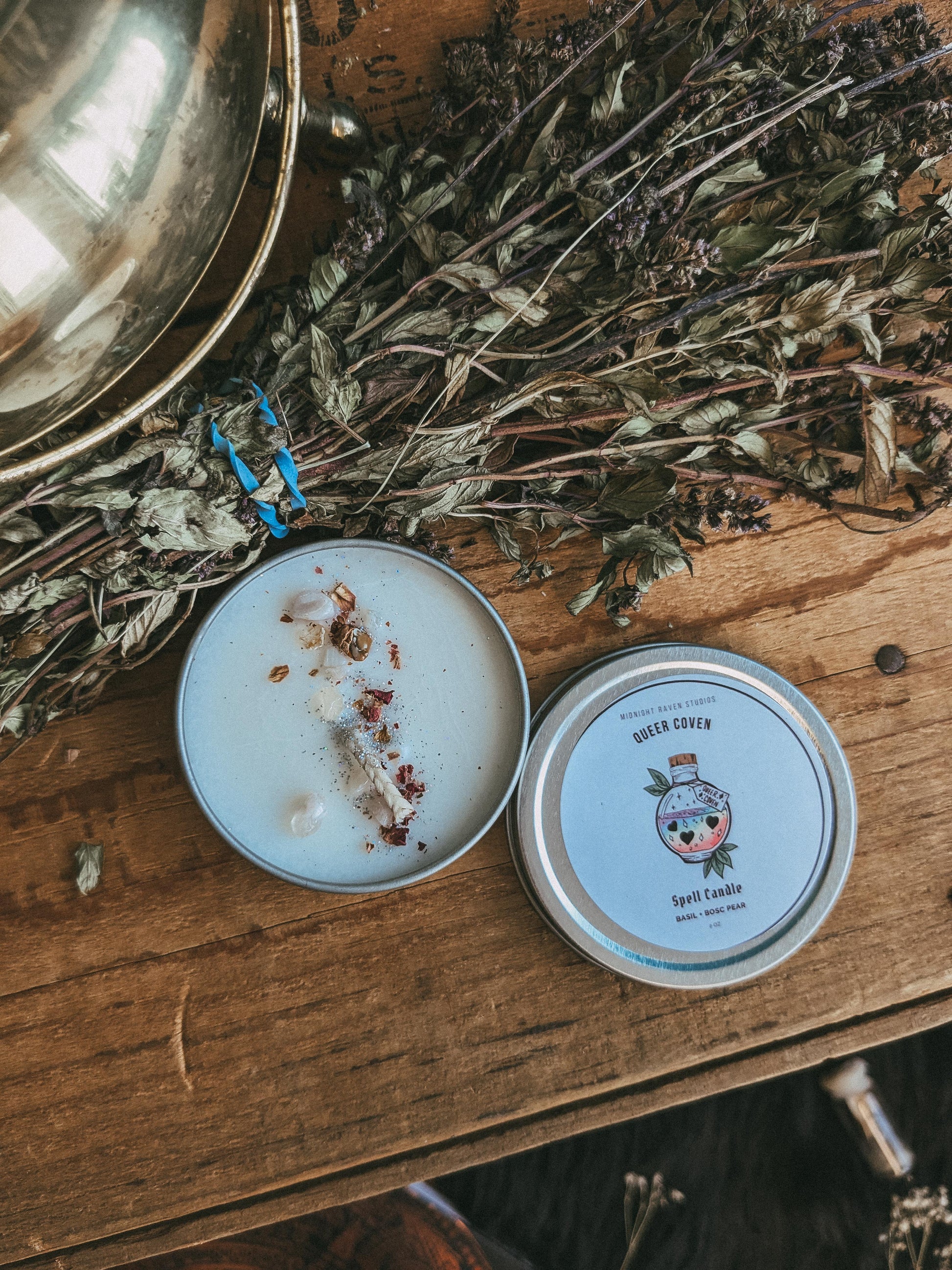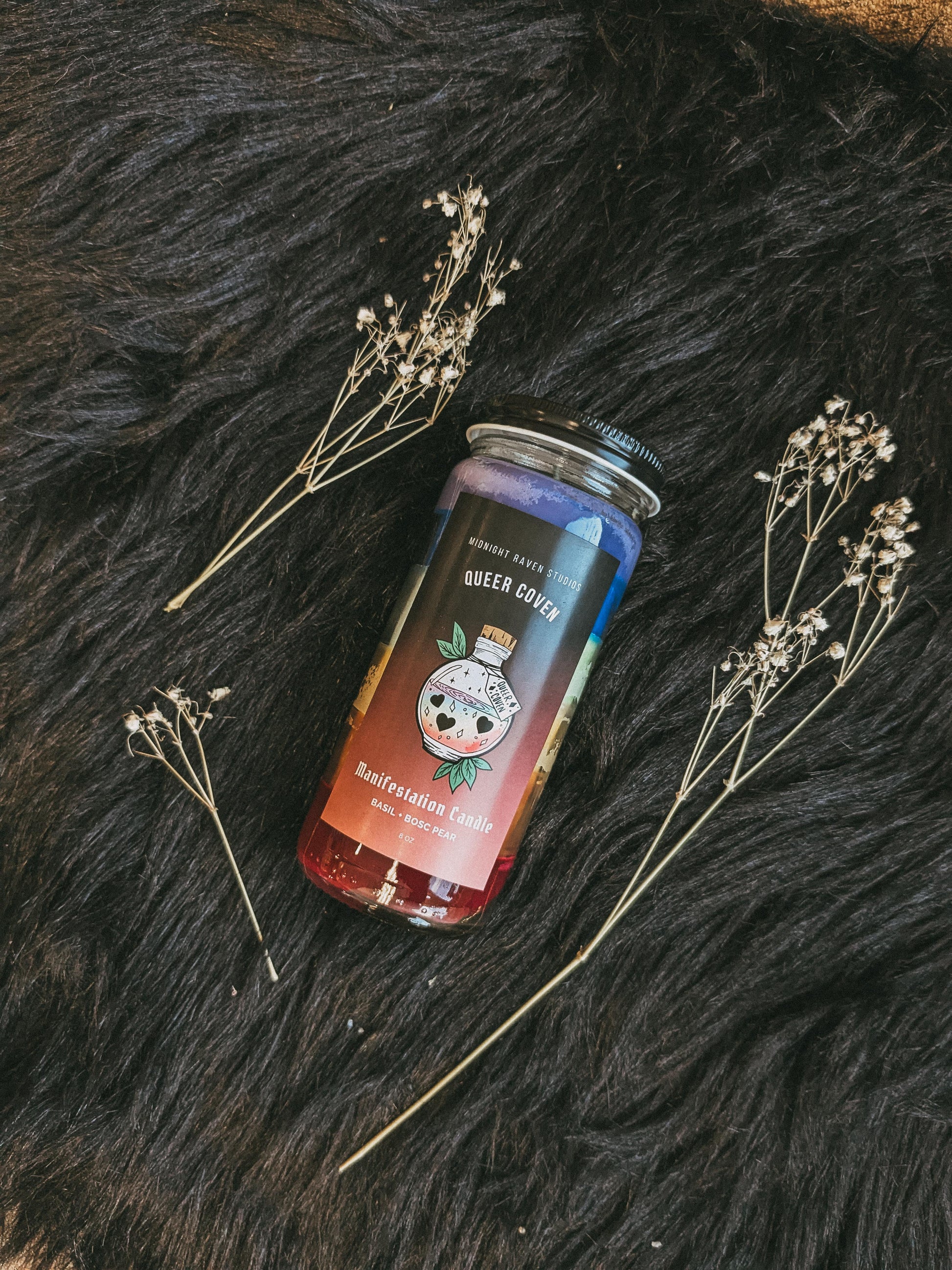 Queer Coven Manifestation Candle - Basil and Bosc Pear