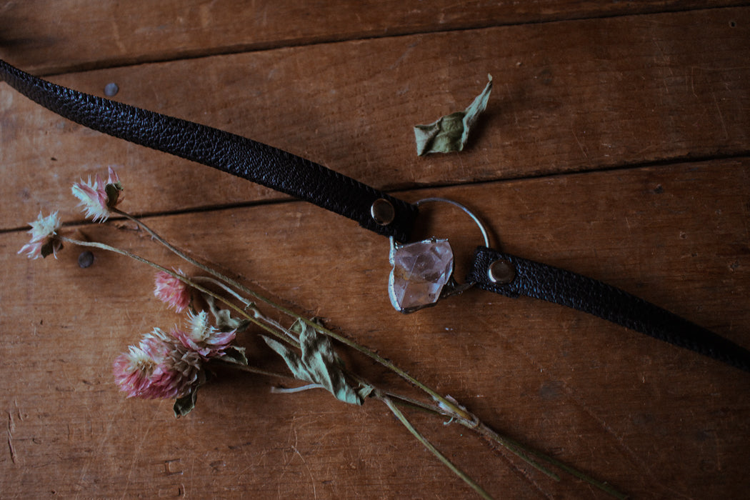 Set on a sleek black faux leather band and adjustable from 14 to 20 inches, this piece brings together rugged glamour and magical precision. Wear it when you want to feel clear, charged, and completely untouchable.