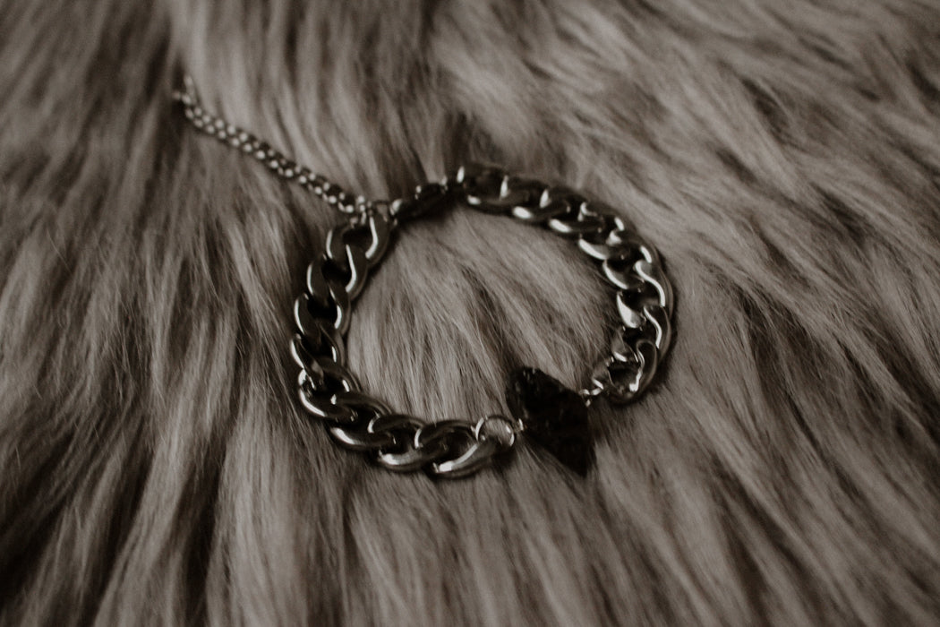 Set on a chunky stainless steel chain with an adjustable fit, this piece is ritual-ready and built to last. Wear it as armor, as intention, or just because you’re feeling your shadow side today.