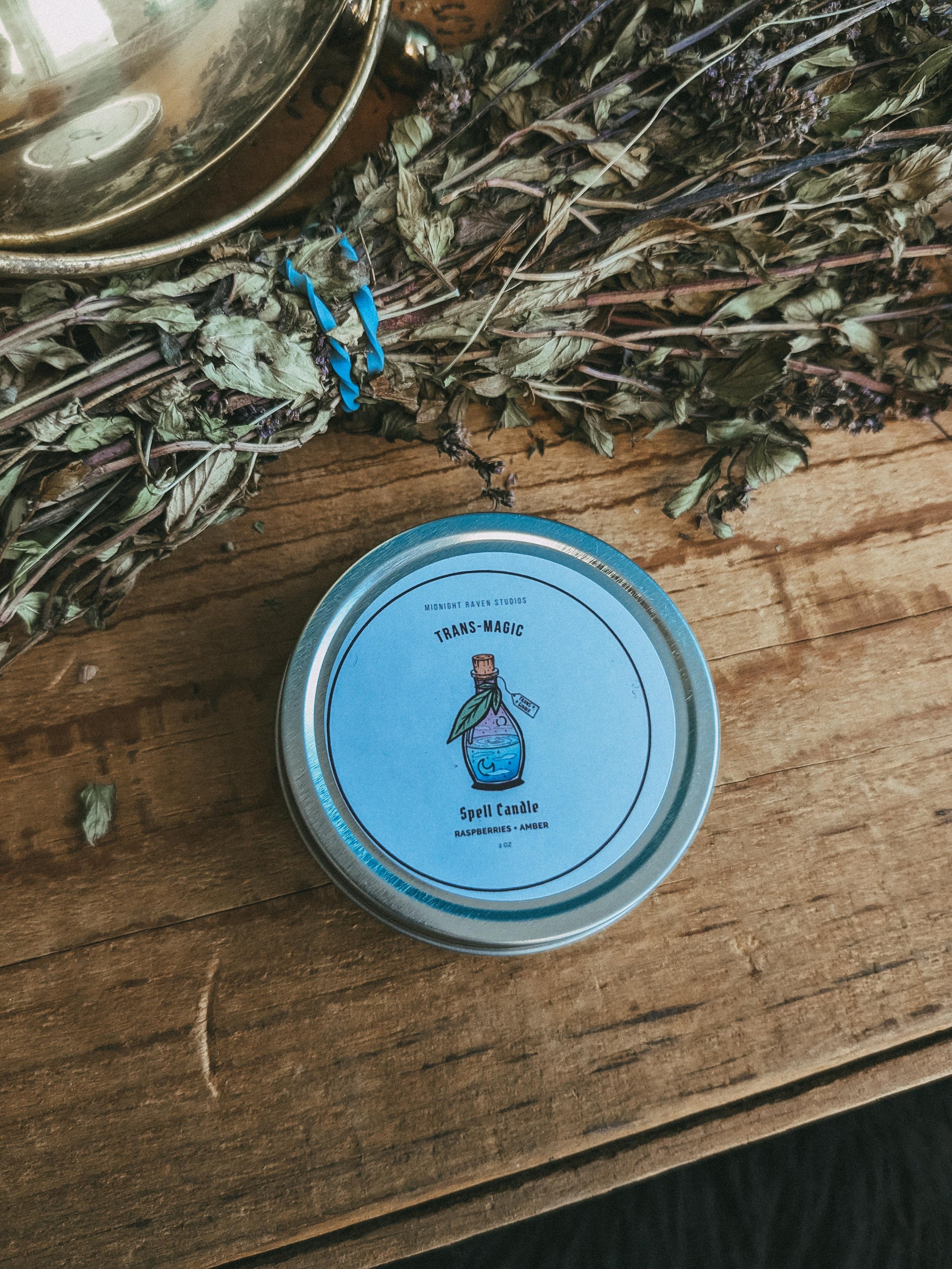 The Trans Magic Pride Candle is hand-poured in soft layers of blue, pink, and white, honoring the trans pride flag and the sacred journey of becoming your truest self. Scented with juicy raspberries and warm amber, it’s equal parts bright, comforting, and powerful—just like trans joy.