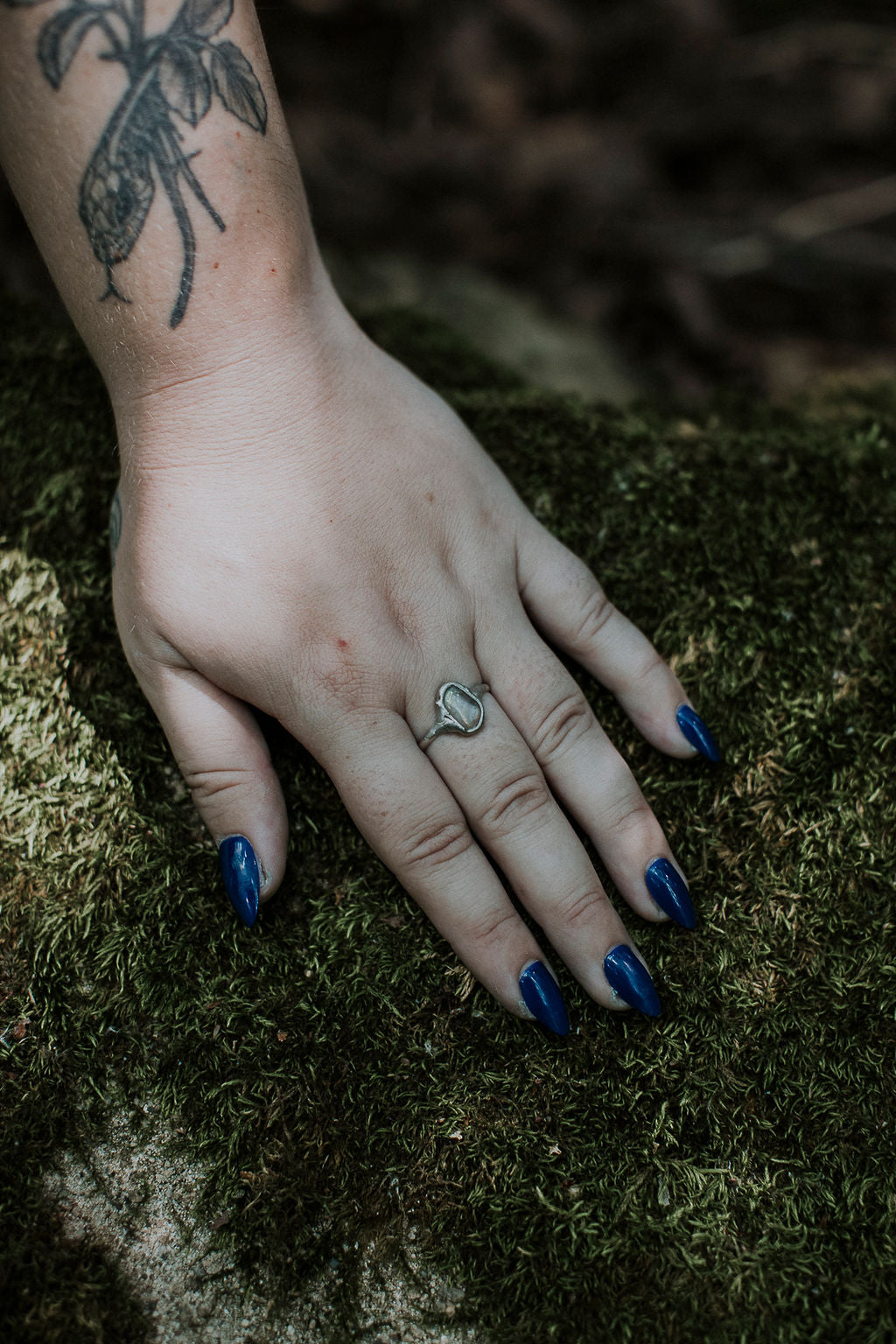 From the Pebble Collection, this raw aura quartz ring is untamed, iridescent, and full of intention—made for those who shine without trying.