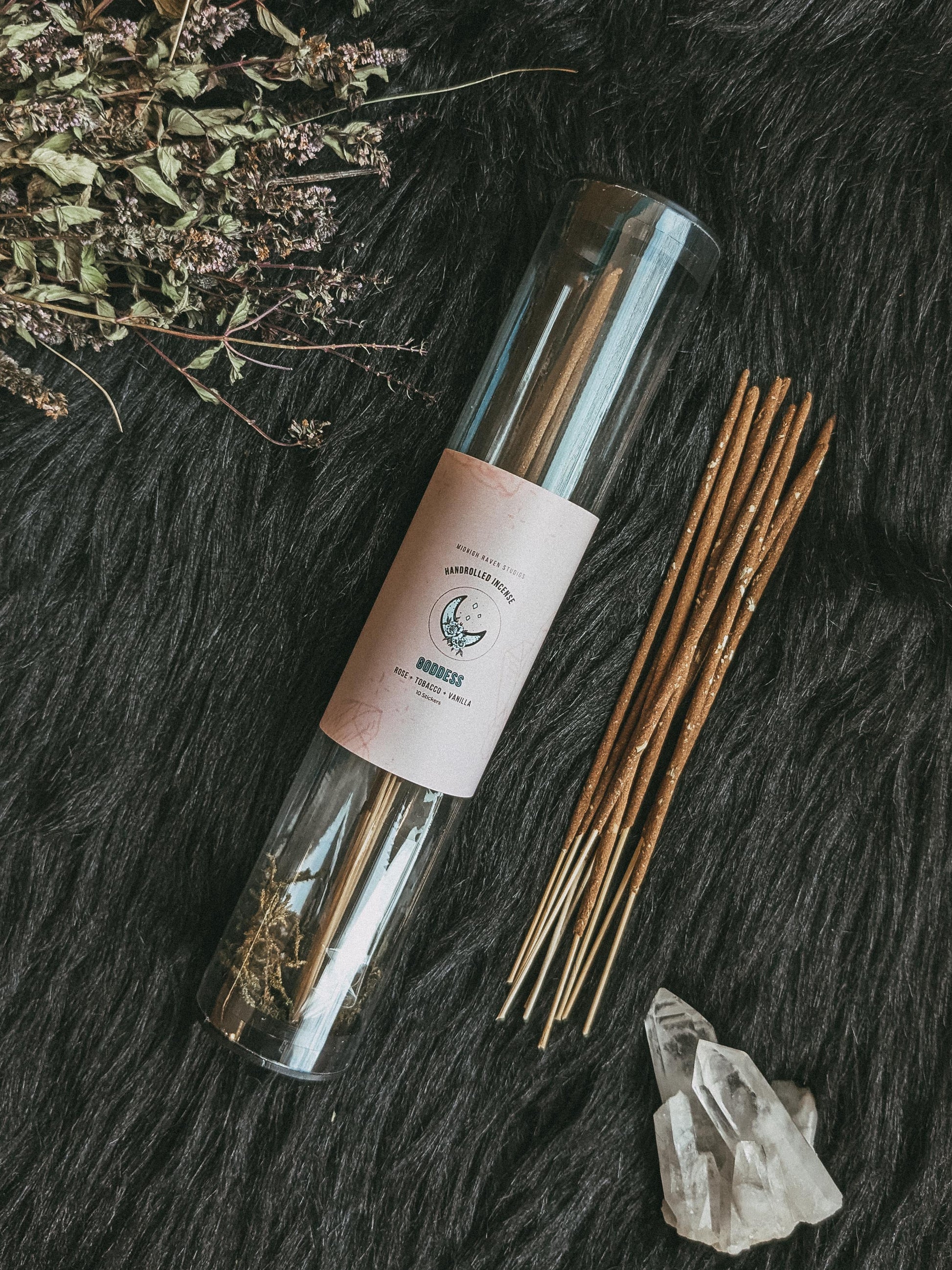 The Goddess Incense is made for those who lead with elegance, radiate charm, and make magic out of the everyday. With a sultry blend of rose, sandalwood, and a smoky whisper of tobacco, this incense creates a vibe that’s both grounding and gloriously magnetic.
