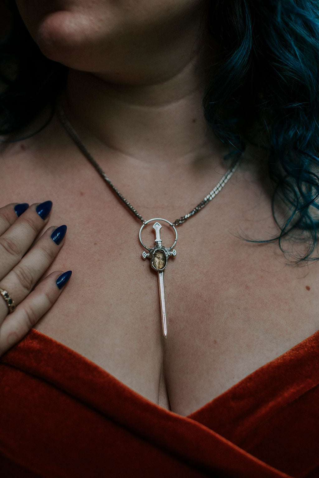 Inspired by Vassa, the firebird trapped in golden chains, the Vassa Sword Necklace is a symbol of fiery spirit, endurance, and transformation. At its center is a warm, glowing citrine—a crystal known for calling in abundance, courage, and radiant self-worth.